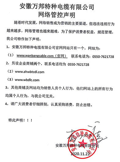 - 安徽萬邦特種電纜有限公司技術力量厚,生產(chǎn)工藝好,檢測設備完善,質量高,管理科學,品種繁多......查看詳細
